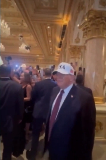 2月27日晚,就在美以联合空袭伊朗前几小时,特朗普还在海湖庄园出席了一场筹款晚宴。现场视频显示,特朗普的装扮和他发表视频讲话时相似,同样带着印有“USA”的帽子。